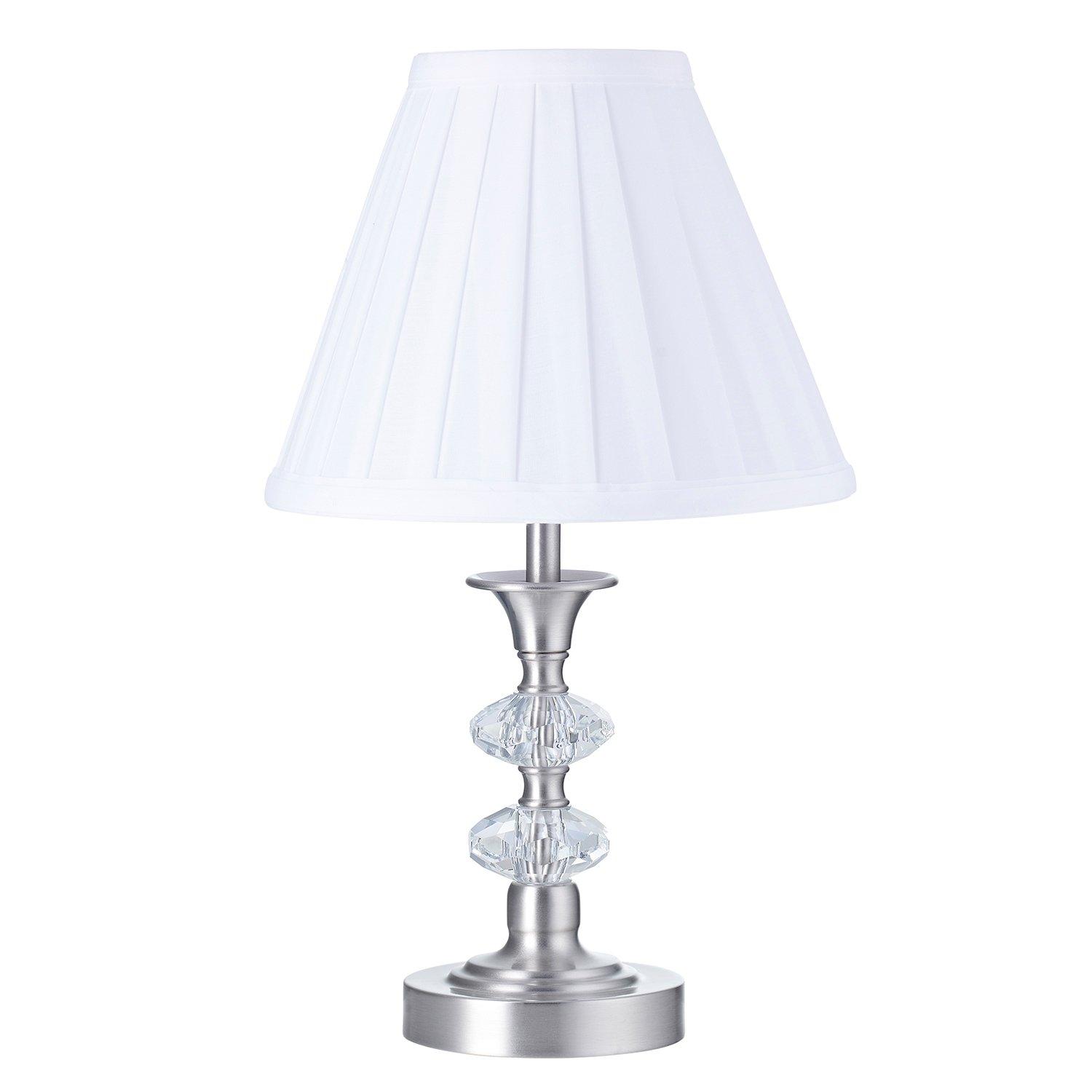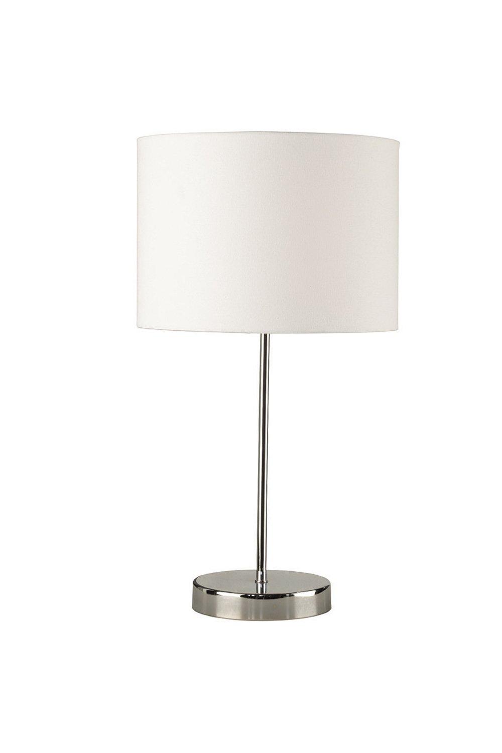 Touch Dimmable Table Lamp Chrome & White Fabric Shade Modern Bedside Desk Light