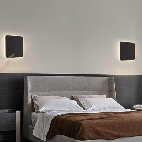 KXQYIKYI Wall Lamp Led Wall Lights Indoor with Touch Control Switches Modern Lamps Sconces for Bedroom Cafeteria Acrylic(Black Square White,20CM)