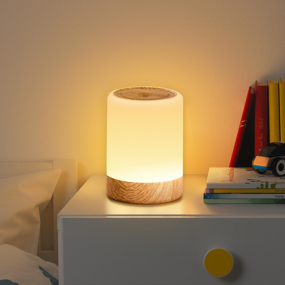 Cordless Table Lamps, Wood Grain, Wireless Touch Control Bedside Lamps for Bedroom