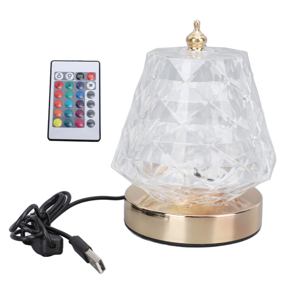 Cordless Crystal Table Lamp With LED Water Wave Projection, Dimmable Touch Lamps For Bedroom With RGB Color Changing And Remote Control