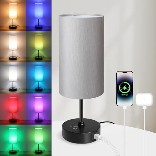 Small Bedside Table Lamp, 256 RGB Color Changing & Warm Touch Lamps for Bedroom, USB Rechargeable Wireless Nightstand Lamp