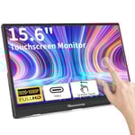 Portable monitor Touchscreen, 15.6inch Monitors IPS FHD 1920x1080 300cd/m² Touch Display USB C/HDMI Screen with Dual Speakers, Ultra-thin for Xbox/Raspberry Pi/Laptop/PC/PS4/5, PC Monitore 15.6"