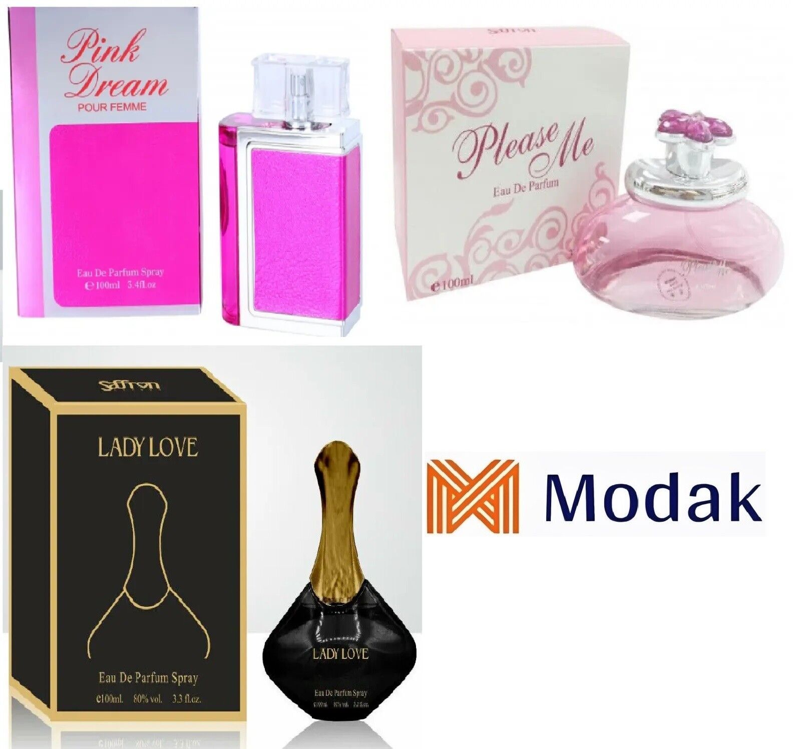 Modak 3 Pack women Perfume Please me, Lady Love, Pink Dream EDP 100ml