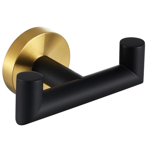 Angle Simple Double Towel Hook Black & Gold, Stainless Steel Bathroom Towel Holder, Hand Towel Hanger for Wall