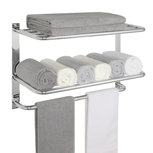 Towel Rack for Bathroom, DEWVIE 22 Inch Tower Holder with Tower Bars, SUS 304 Stainless Steel Lavatory Bath Towel Shelf Towel Hanger Wall Mount, 3-Tier (Brushed Nickel)