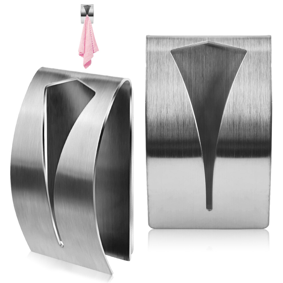 Firm Towel Holding Self Adhesive Hook, Stainless Steel Non-Drilling For Kitchen And Bathroom, Silver (2 Pieces)