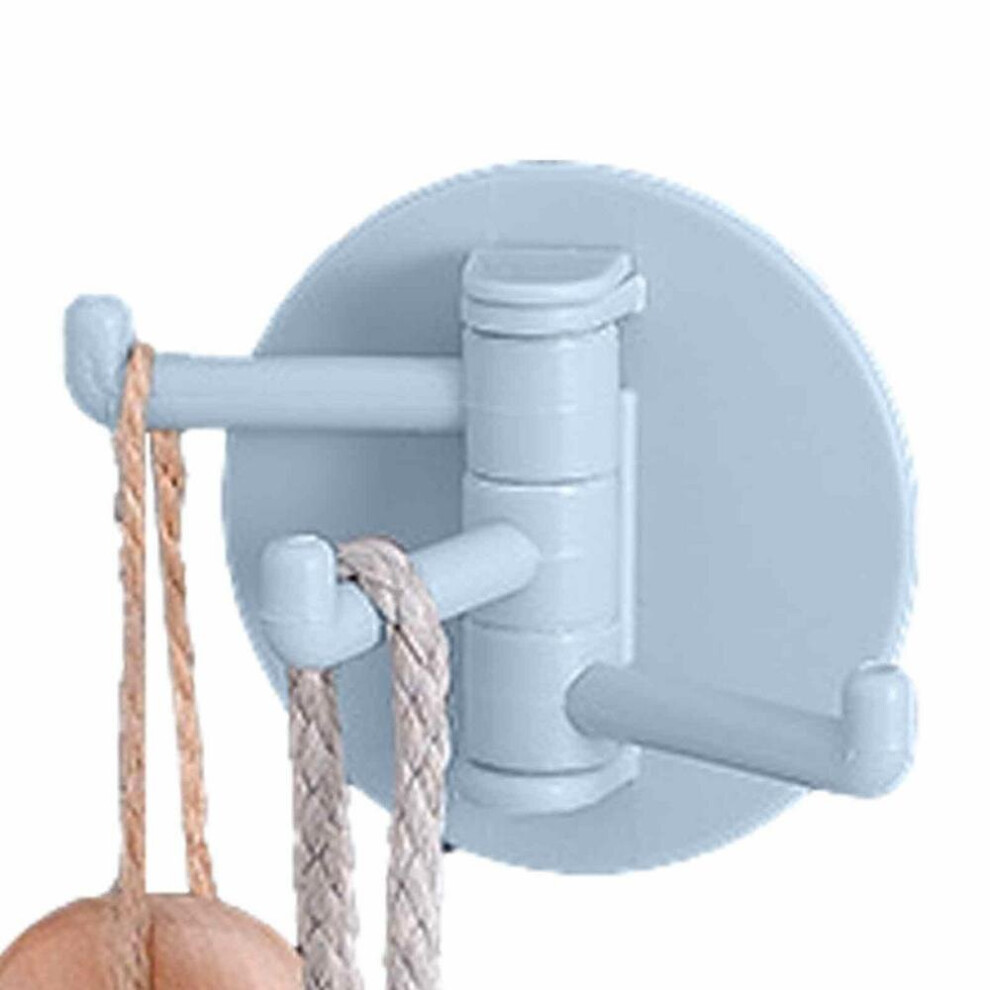 (a-Blue) Rotating Wall Hook Adhesive Bathroom Towel Hook With Three Branches Versatile Kitchen Organizers Storage For Holding Utensils