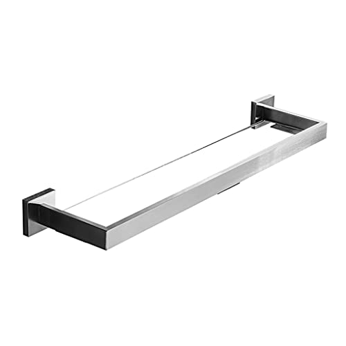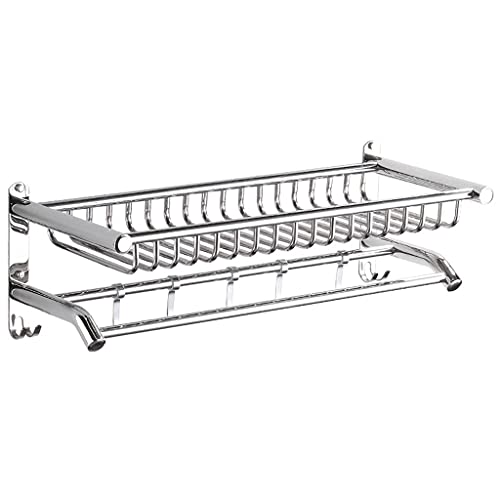 YIHANSS Bathroom Shower Storage Rack Wall Mounted SUS 304 Stainless Steel Bathroom Shelf Towel Rack With Hooks Bathroom shelf (Color : Silver Size : 60cm) (Silver 60cm)