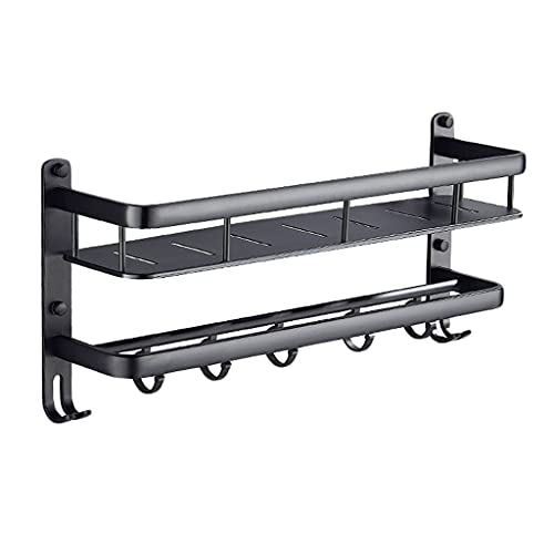 7LiuYueFei6 Bathroom Shelf Shower Organiser Wall Mounted Space Aluminum Bathroom Shelf Towel Rack With Hooks Bathroom shelf (Color : Black Size : 40cm) (Black 50cm)