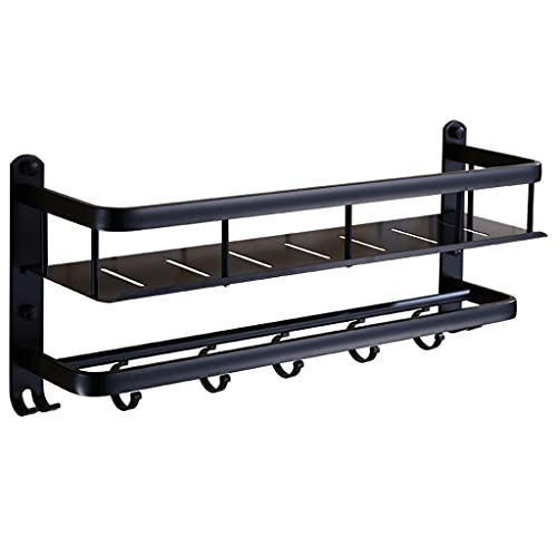 YIHANSS Bathroom Shelf With Towel Bar And Hooks Bathroom Shower Shelf Kitchen Storage Basket Bathroom shelf (Color : Black Size : 60cm) (Black 50cm)