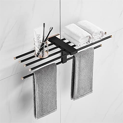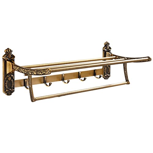 JQQJZLC Towel Rails, Aluminum Foldable Antique Brass Bath Towel Rack Active Bathroom Towel Holder Double Towel Shelf with Hooks Bathroom Accessories