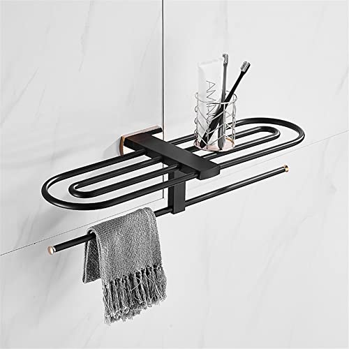 JQQJZLC Bathroom Shelves Floating Shelves Aluminum Foldable Antique Brass Bath Towel Rack Active Bathroom Towel Holder Double Towel Shelf with Hooks Bathroom Accessories for Bathroom Storage