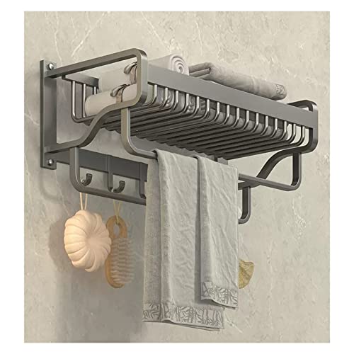 AYCDL Bathroom Organiser Bathroom Wall Shelf Towel Rack With Double Towel Bar And Fixed Hooks Towel Holder Bathroom Shelf Wall Mount Towel Shelf, Matte Grey Shower Shelves,One Color-L57cm
