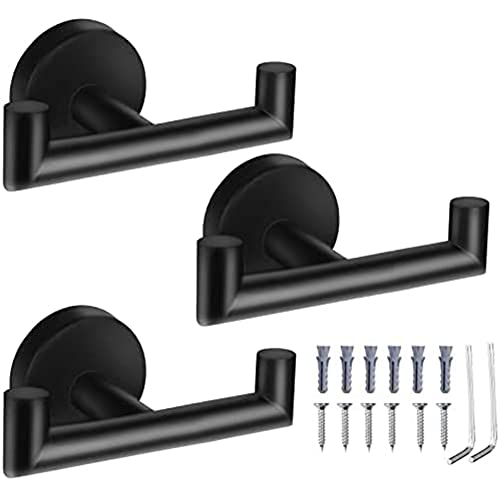 Gosera Double Towel Hooks for Bathroom Black Wall Mount Robe Hook Double Towel Hook Towel Holder for Kitchen Bathroom