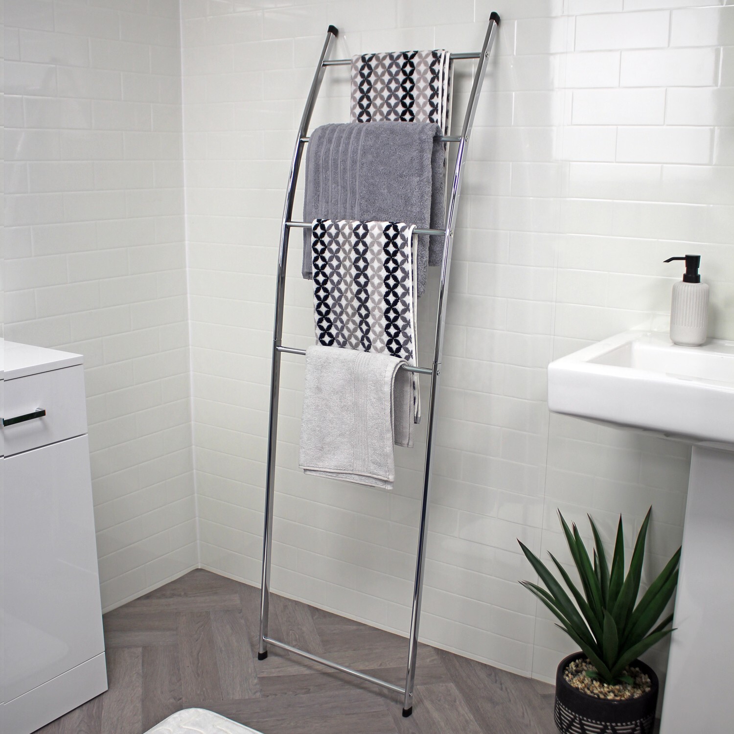 Chrome Towel Rail Freestanding Ladder 4 Tier Rack Steel Bathroom Storage Holder