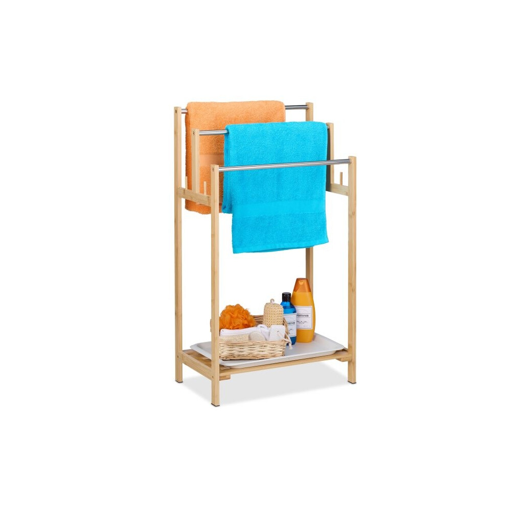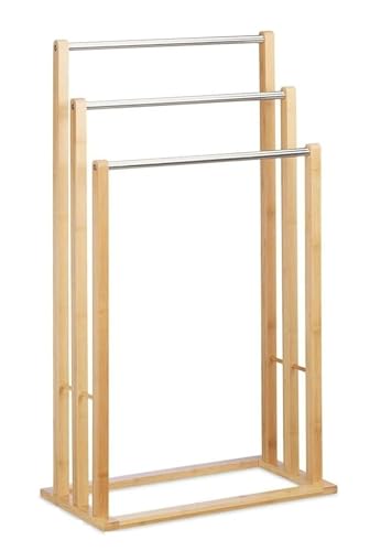 Towel Holder Freestanding with 3 Towel Rails, Towel Stand for Bathroom, Wood, Stainless Steel, HWD: 84 x 46 x 24.5 cm, Natural Camper Van Caravan Camping Shed Garage Rail