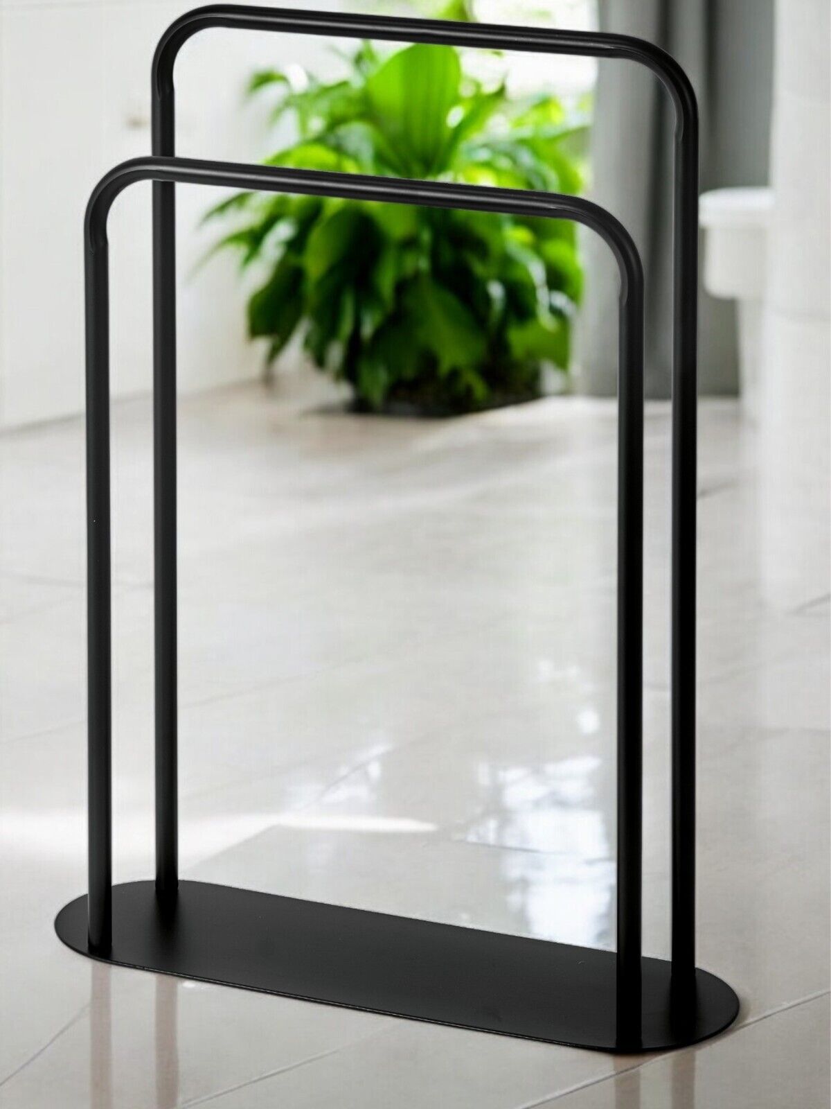 Freestanding Bathroom 2-Tier Curved Black Towel Stand Rack Rail Holder Drying