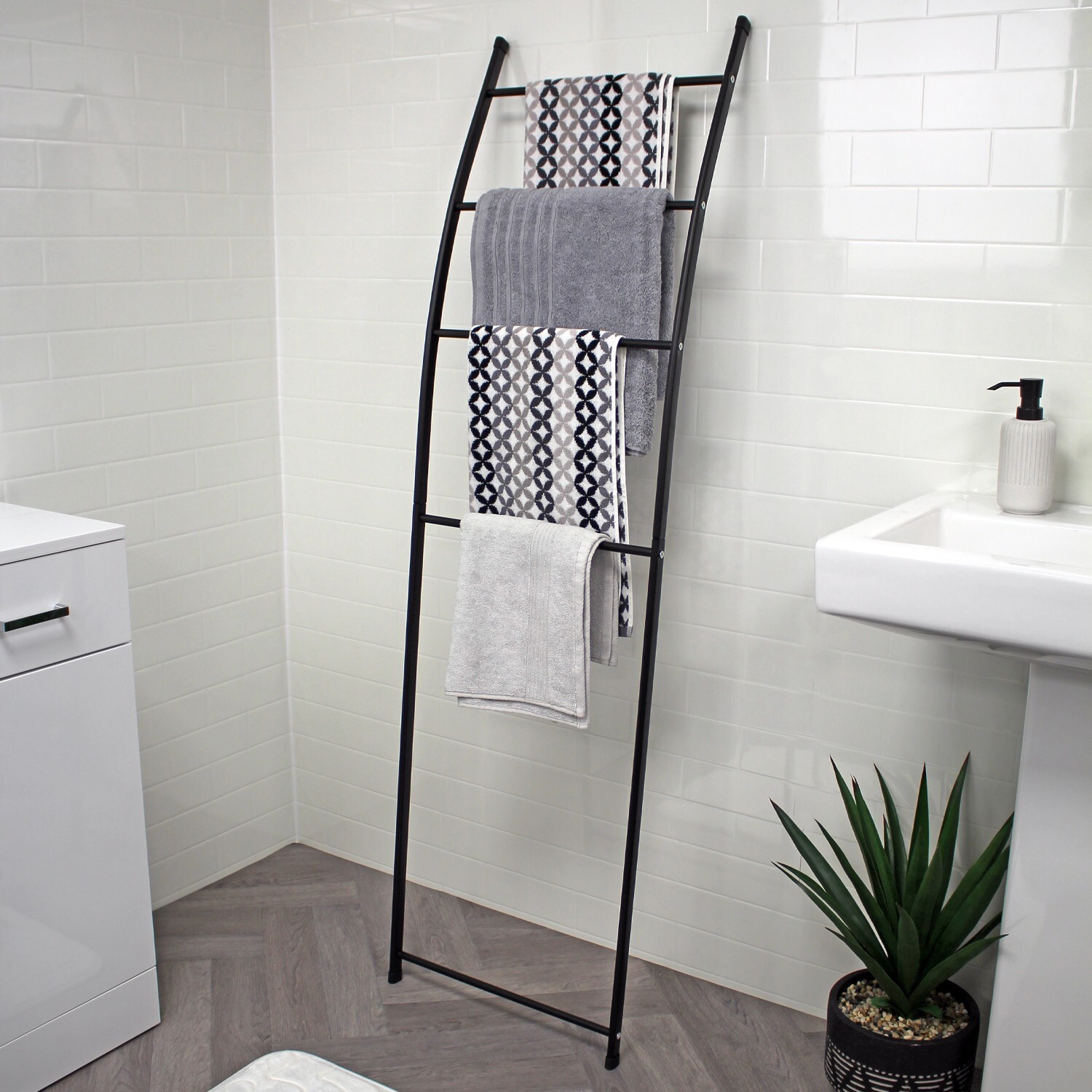 Freestanding Bathroom Towel Rail Rack - Metal Towel Ladder Shelf, Modern Design, Black, Floor Standing Storage Solution
