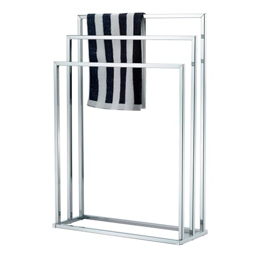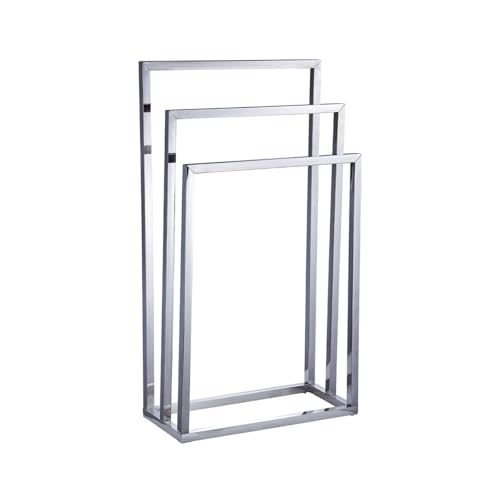 Amig – Chrome freestanding towel rail with 3 metal bars – Floor-standing bath towel holder – Modern style with glossy finish and stable base – No drilling required