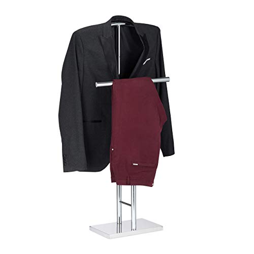 Relaxdays Chrome Men’s Valet Stand, Freestanding Towel Rack, Double Rail, HWD: 106x49x20 cm, Silver