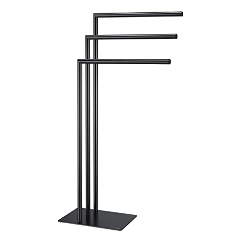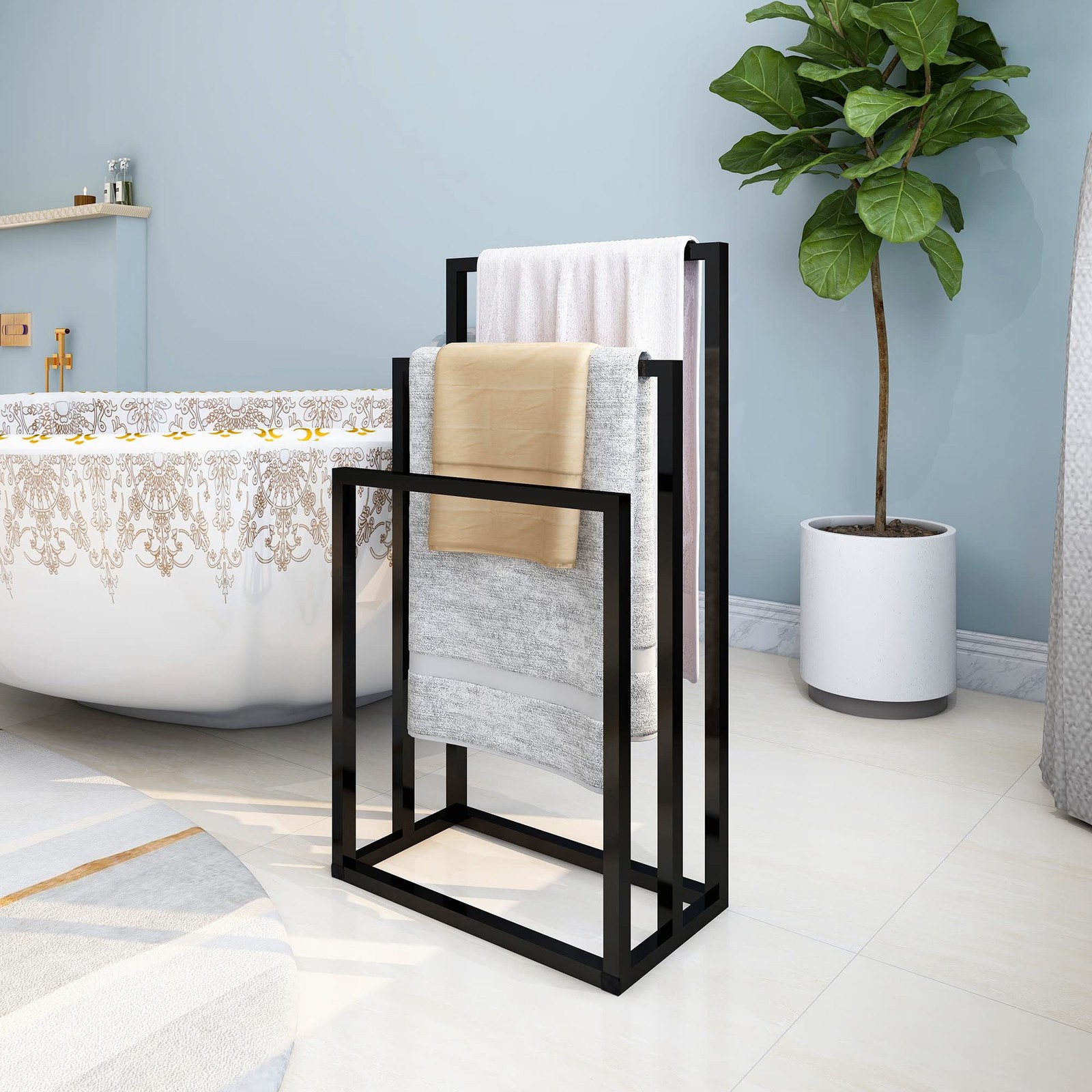 aleawol 3 Tier Black Freestanding Towel Rail, Metal Towel Rack Freestanding Towel Holder, Towel Tack Stand Towel Drying Rack Free Standing for
