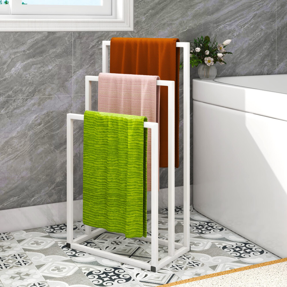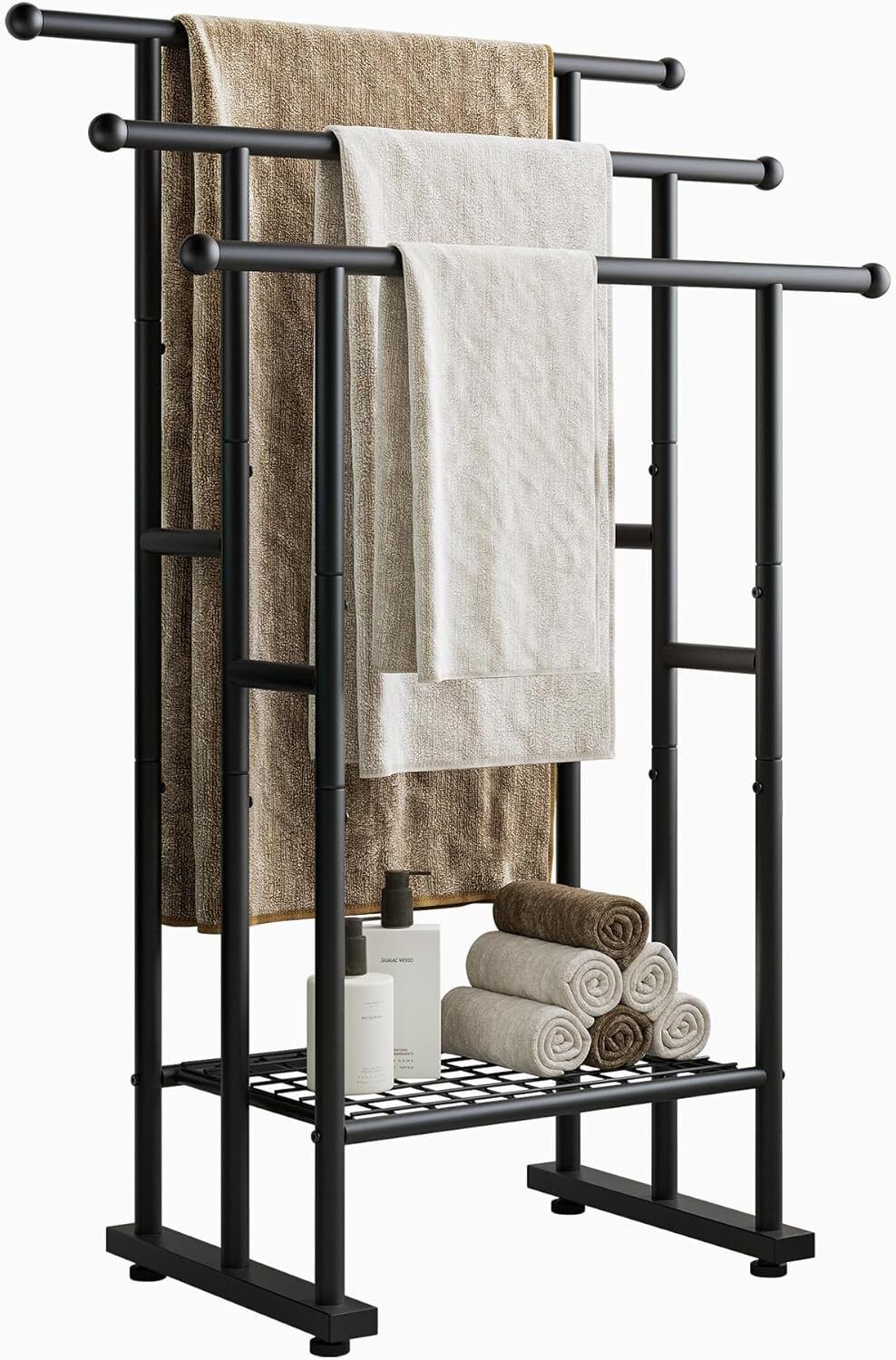 HOJINLINERO 3 Tier Freestanding Towel Rail Rack Stand,Metal Holder and Drying Ba