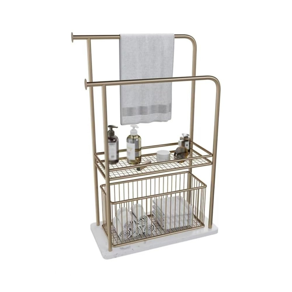 Marble Freestanding Towel Rack Gold Floor-Standing Towel Rail With Bathtub Storage Shelf And Towel Stand