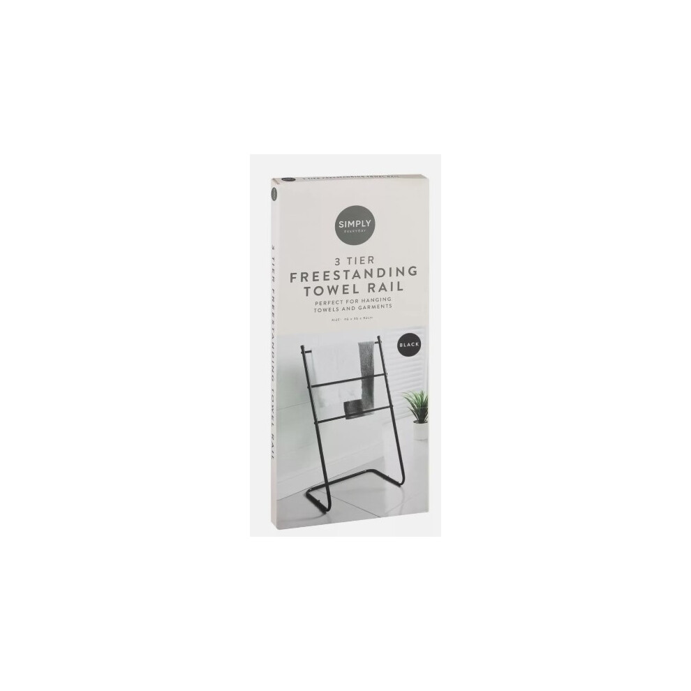 Towel Rail Black 3 Rails Hooks Bathroom Rack Freestanding 3 Tier