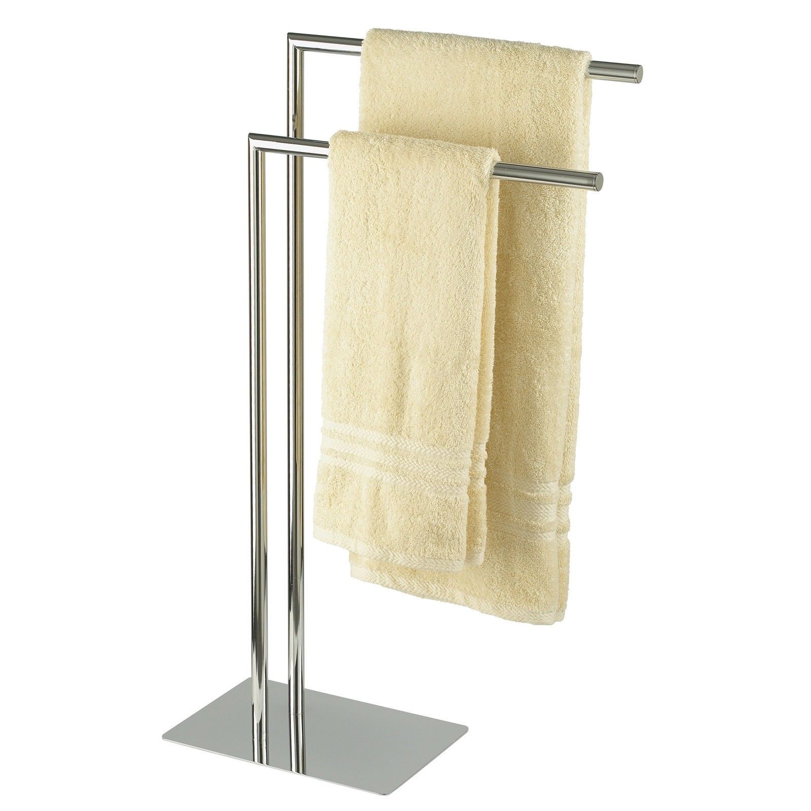 Freestanding Chrome Stamford Double Towel Rail Stand Holder Rack Bathroom