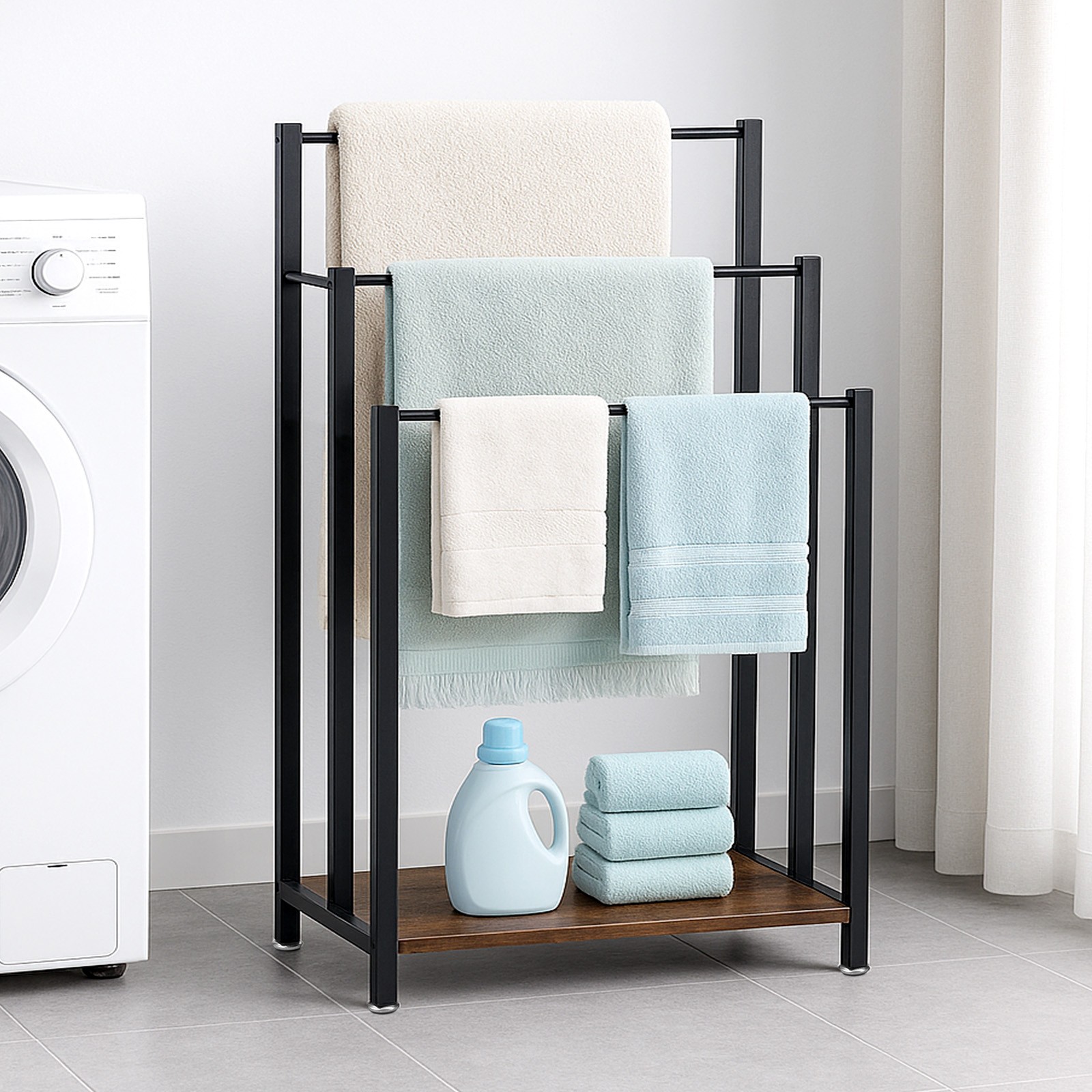 3-Bar Towel Rack Freestanding Towel Rack Industrial Metal Towel Rail