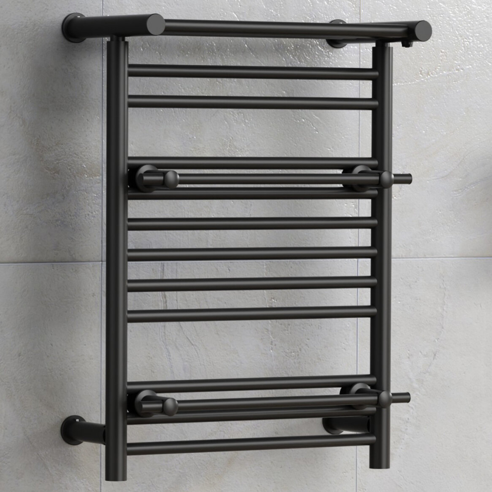(Matt Black, No Valves) Designer Heated Towel Rail Radiator With Top Shelf OSLO