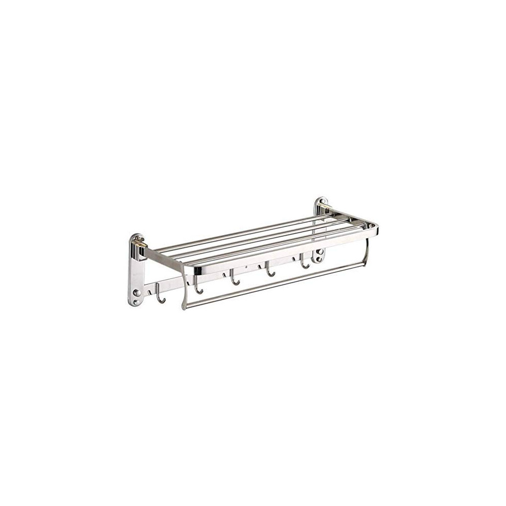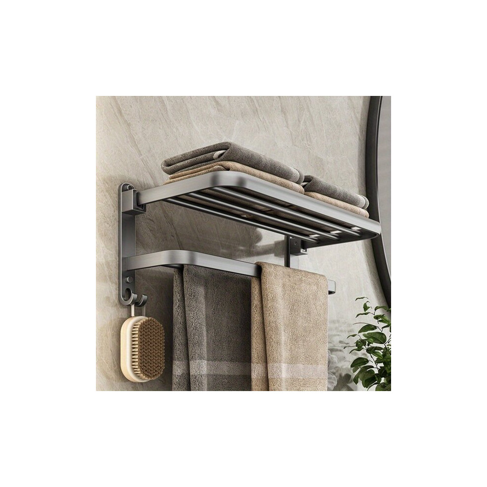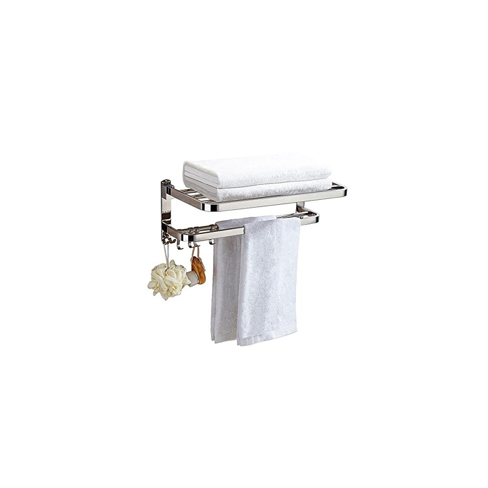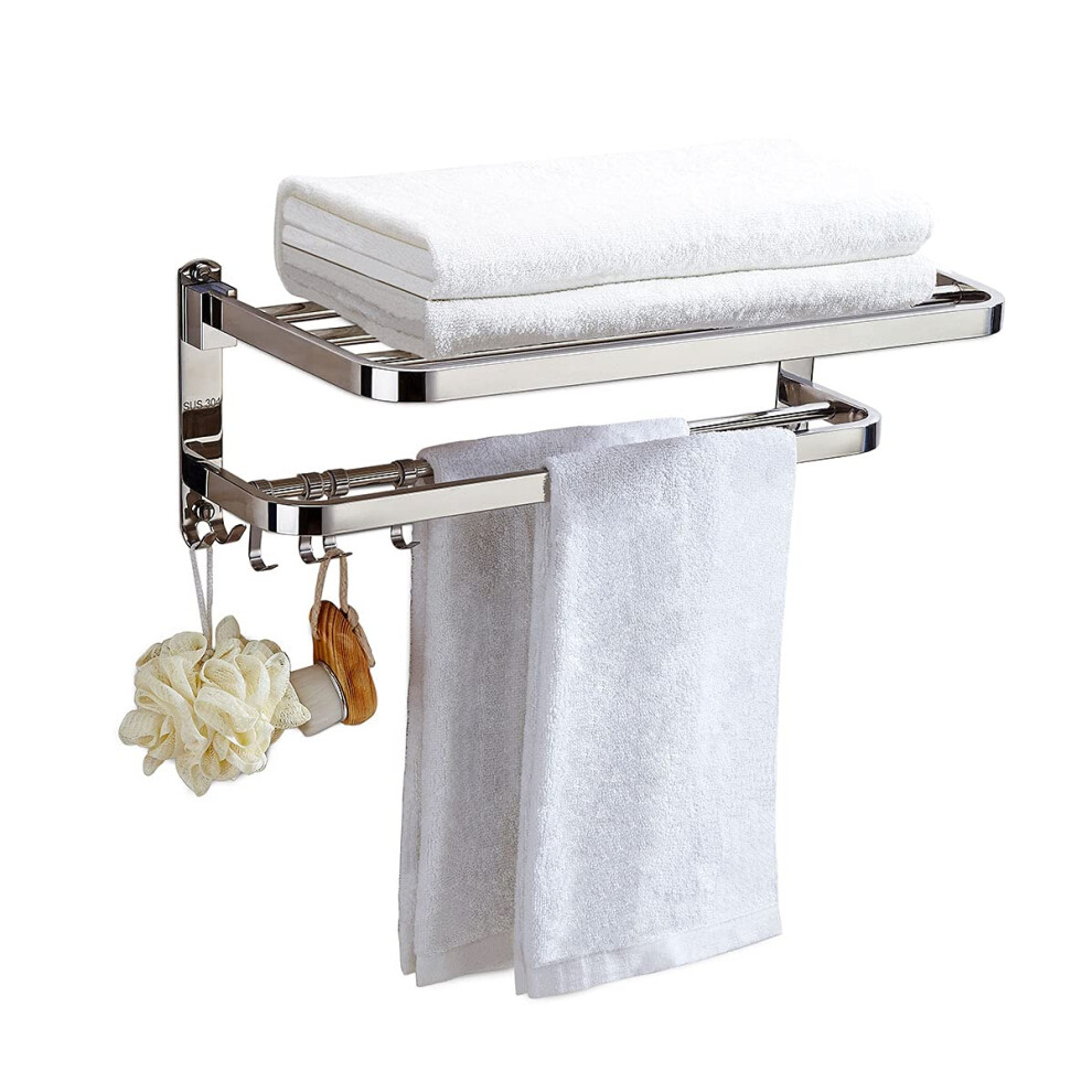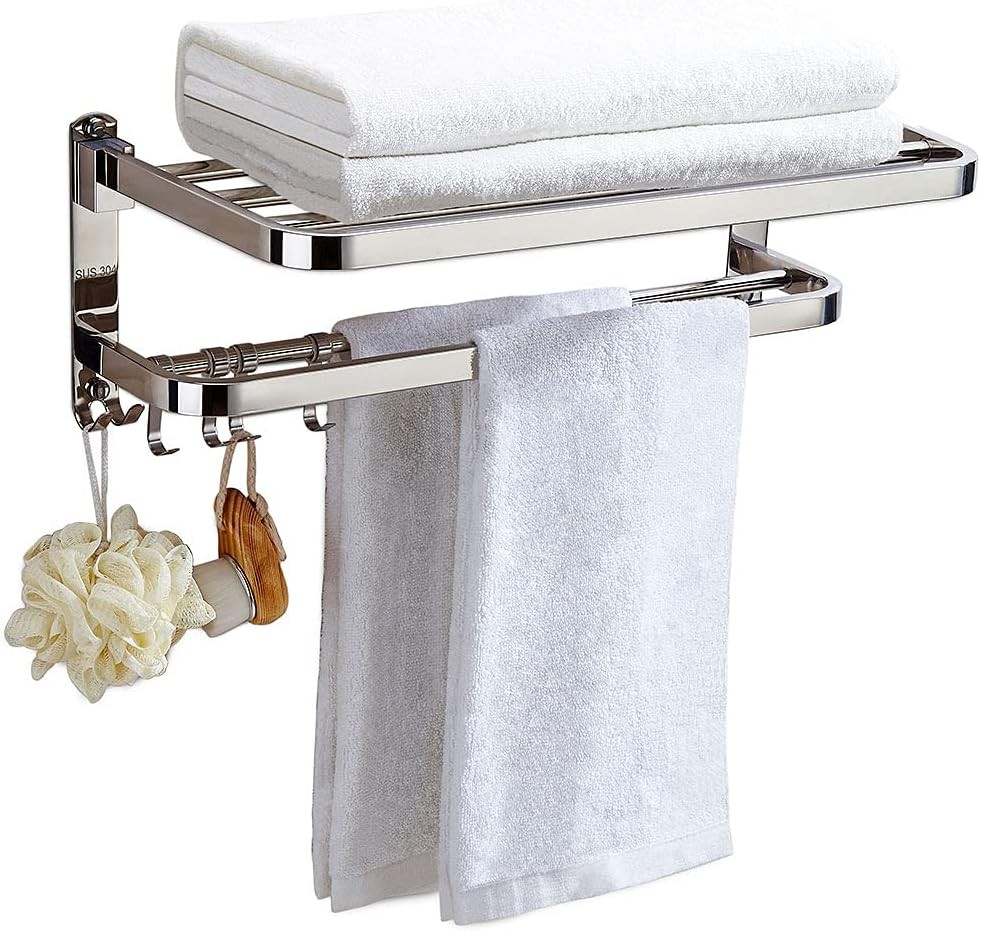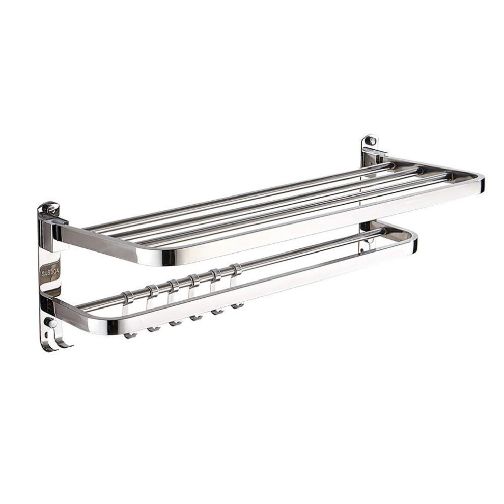 Folding Towel Rack Stainless Steel Towel Rail With Double Towel Shelf WallMounted Bathroom Organizer