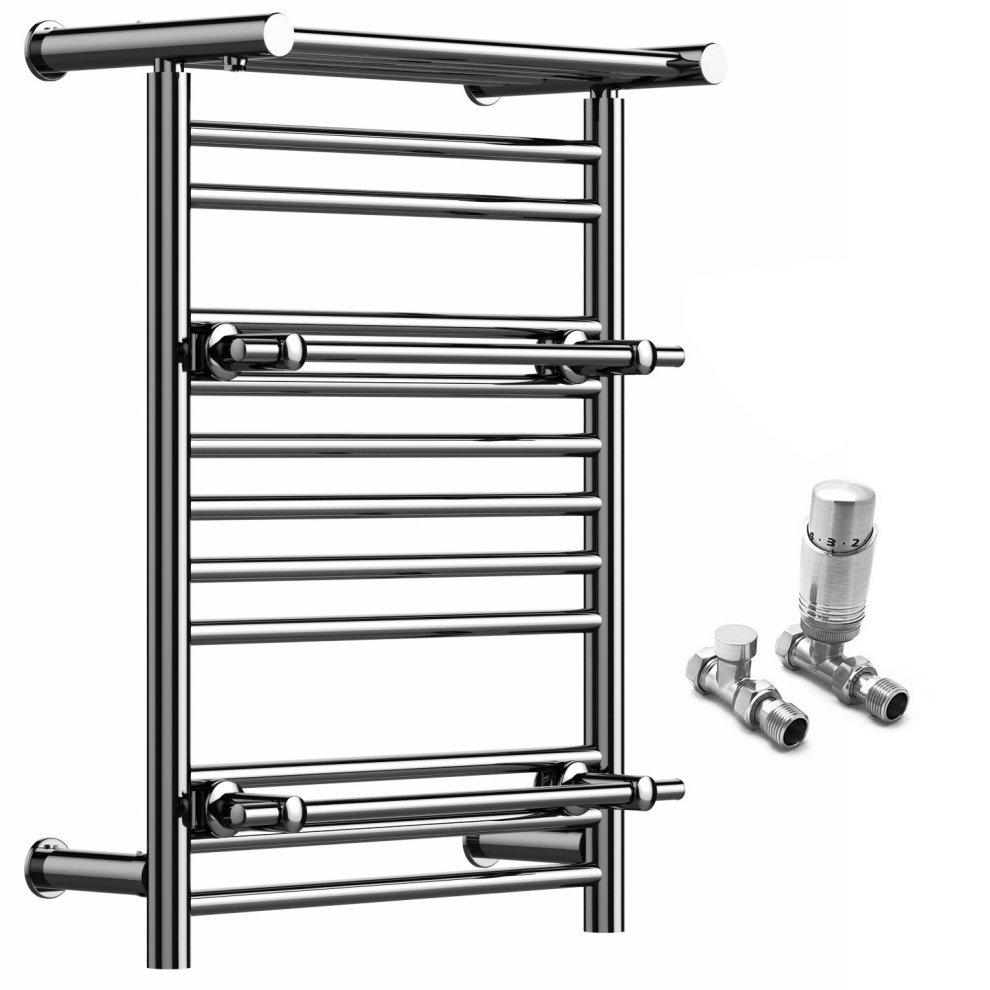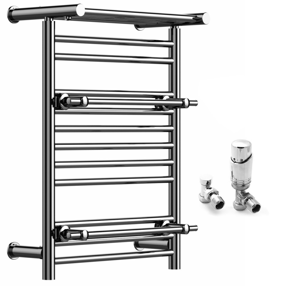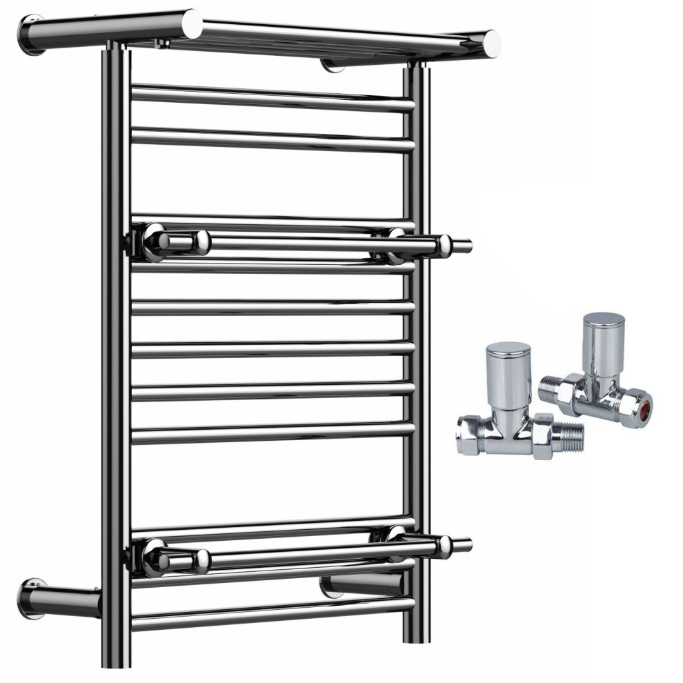 (Chrome, With Straight Valves) Designer Heated Towel Rail Radiator With Top Shelf OSLO