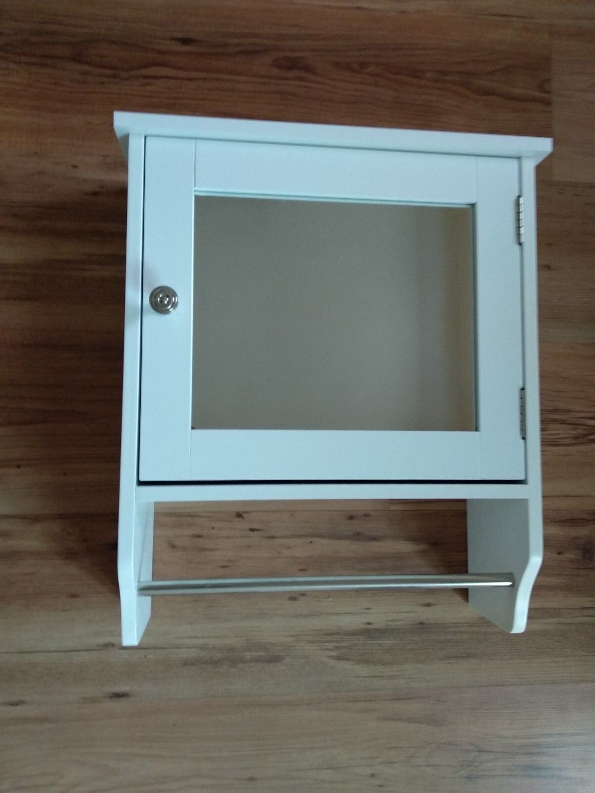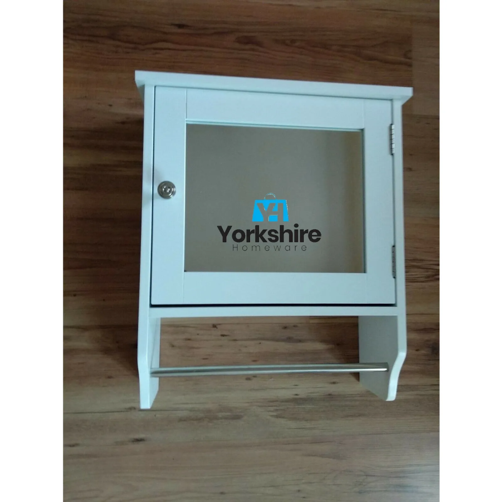 White Wood Single Mirror Door Storage Cabinet Towel Rail with Shelf