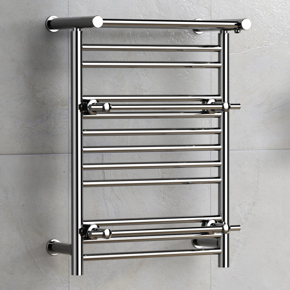 (Chrome, No Valves) Designer Heated Towel Rail Radiator With Top Shelf OSLO