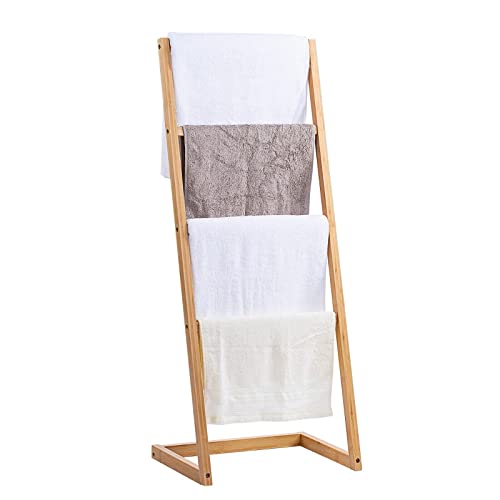 Vencier Bamboo Freestanding Towel Rack Drying Stand with Four Hanging Rails Wooden Bathroom Clothes Rack Clothing & Towels Freestanding Holder