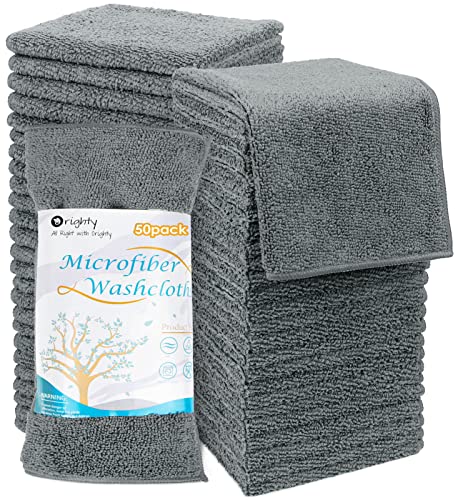 Orighty Microfibre Washcloths Towel Sets 50 Pack, Highly Absorbent and Super Soft Fingertip Towels, Multi-Purpose Wash Cloths for Bathroom, Hotel, Gym, and SPA, 12x12 Inch, Gery