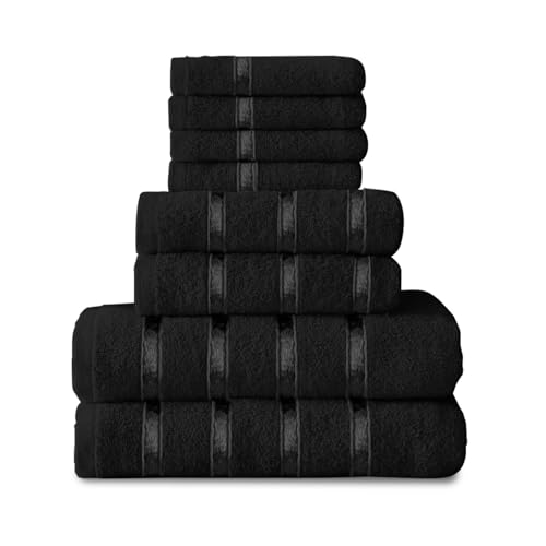 GC GAVENO CAVAILIA 8 Piece Towel Bale Set, Quick Dry Highly Absorbent Cotton Towel Sets Bathroom, Black Towels Sets 450 GSM, 4x Face Towel 2x Hand Towels 2x Bath Towels