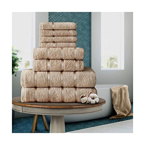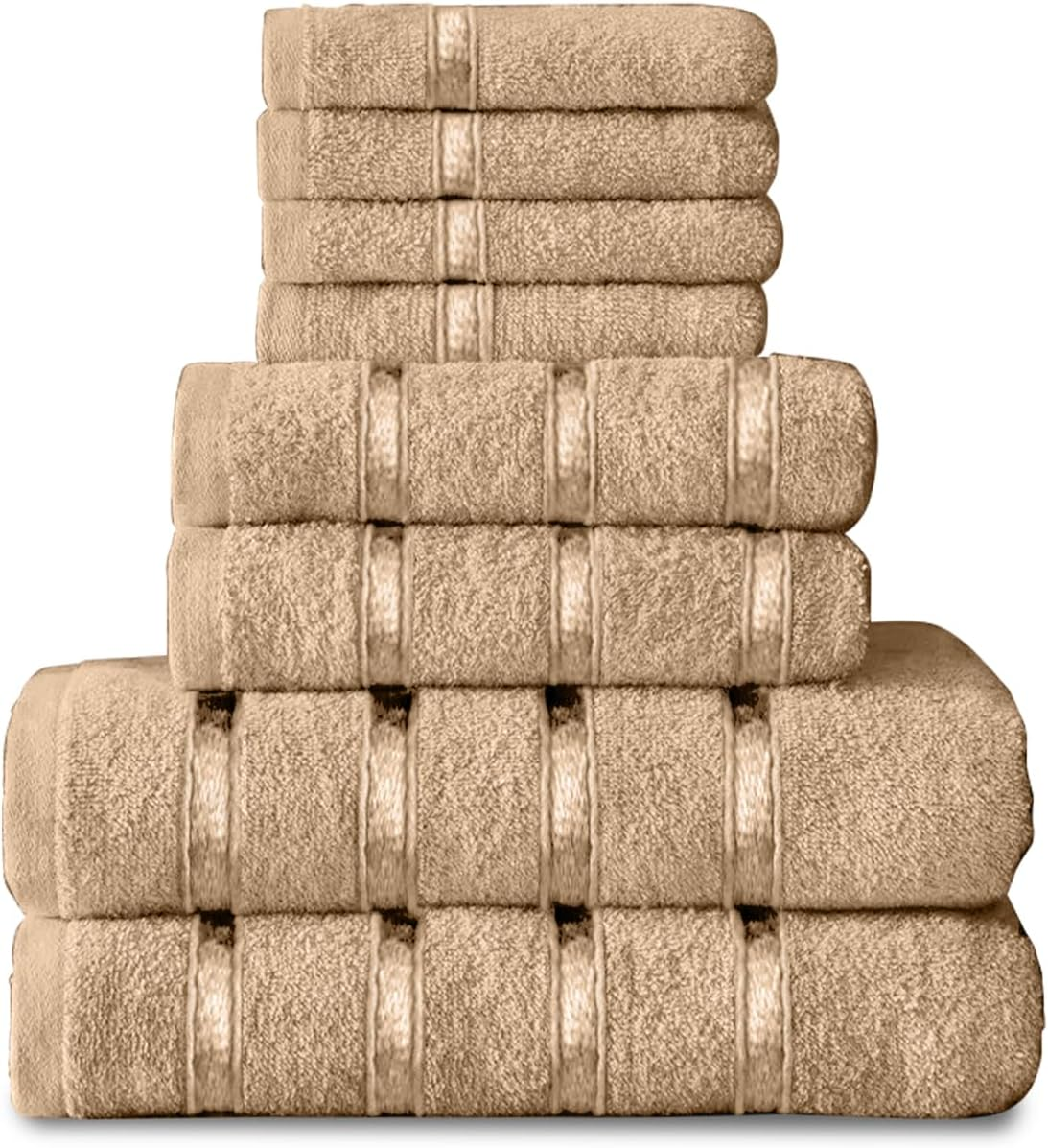 FAIRWAYUK 8-Piece Towels Bale Set for Bathroom, Ultra Soft Premium Quality Water Absorbent Towel Gift Sets, 100% Egyptian Cotton, 4x Face 2x Hand 2x Bath Towels, Natural