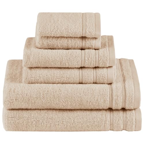 Comfort Spaces Bathroom Towel Set of 6 Piece Luxury Bath Towel Set 2 Hand Towel for Bathroom 2 Washcloth 2 Large Bath Towel Sets 100% Cotton Quick Dry Towel Zero Twist Soft Lightweight Beige Tan