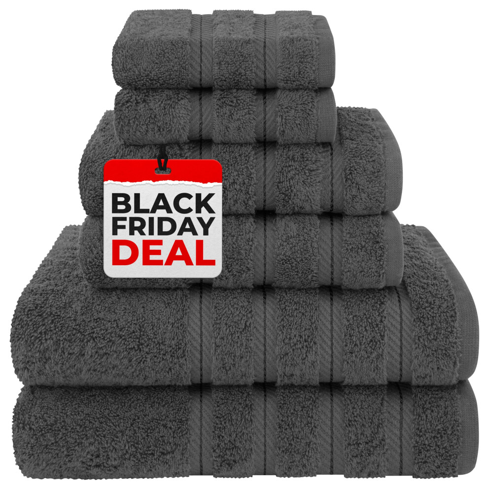 Hotel & Spa Quality Super Absorbent & Soft, Cotton, 6 Piece Turkish Towel Set for Kitchen & Decorative Bathroom Sets Includes 2 Bath Towels 2 Hand Towels 2 Washcloths, Charcoal Grey