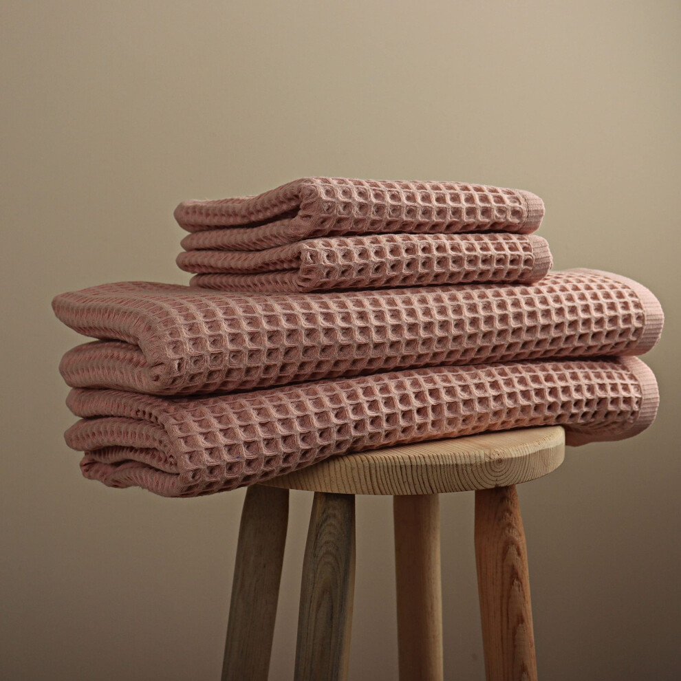 Pskl - 4 Pieces Waffle Towel Sets for Bathroom Premium Organic Turkish Cotton 2 Hand Towels 2 Bath Towels Set (Pink)