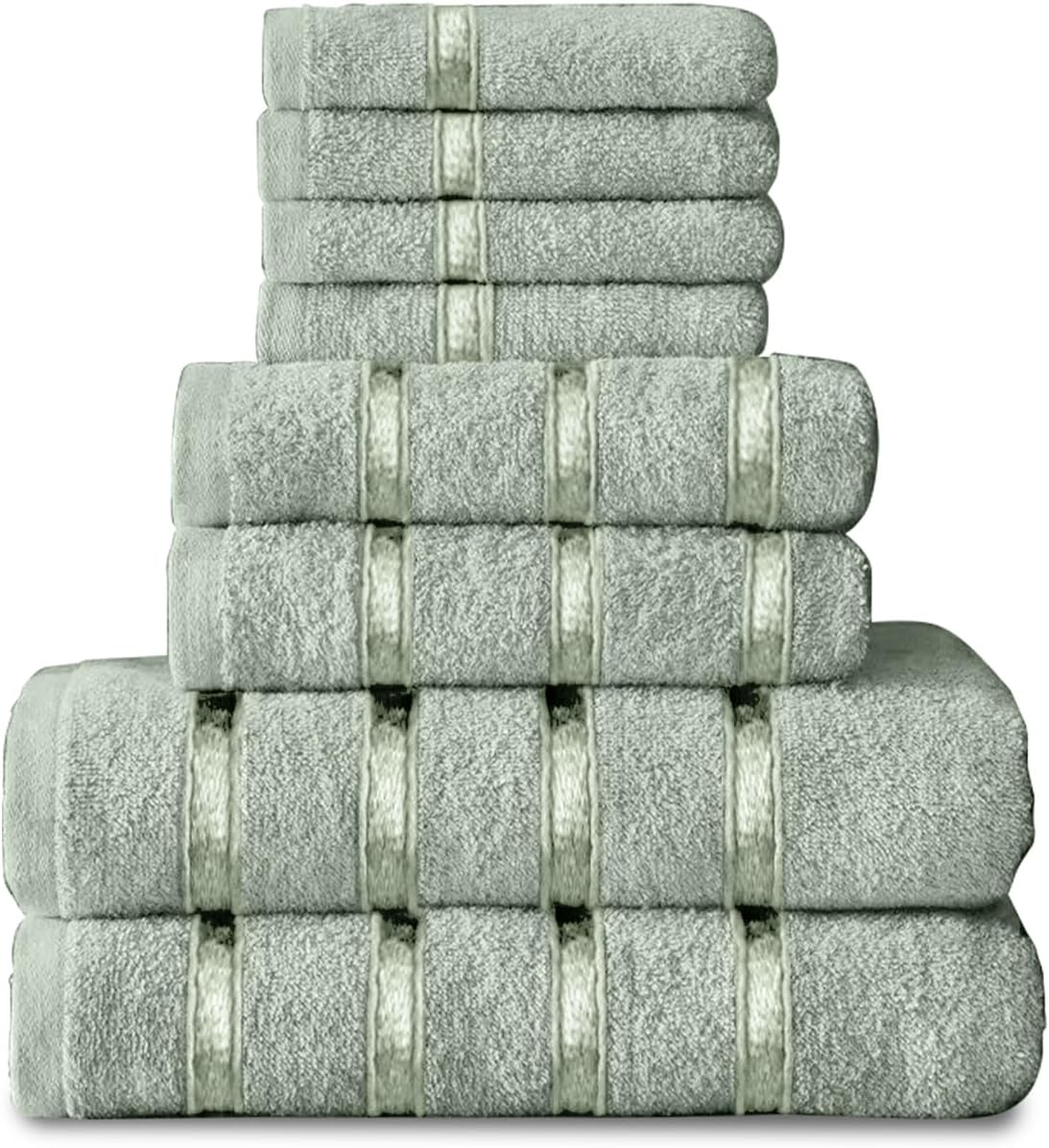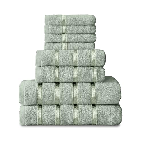 GC GAVENO CAVAILIA 8 Piece Towel Bale Set, Quick Dry Highly Absorbent Cotton Towel Sets Bathroom, Green Towels Sets 450 GSM, 4x Face Towel 2x Hand Towels 2x Bath Towels