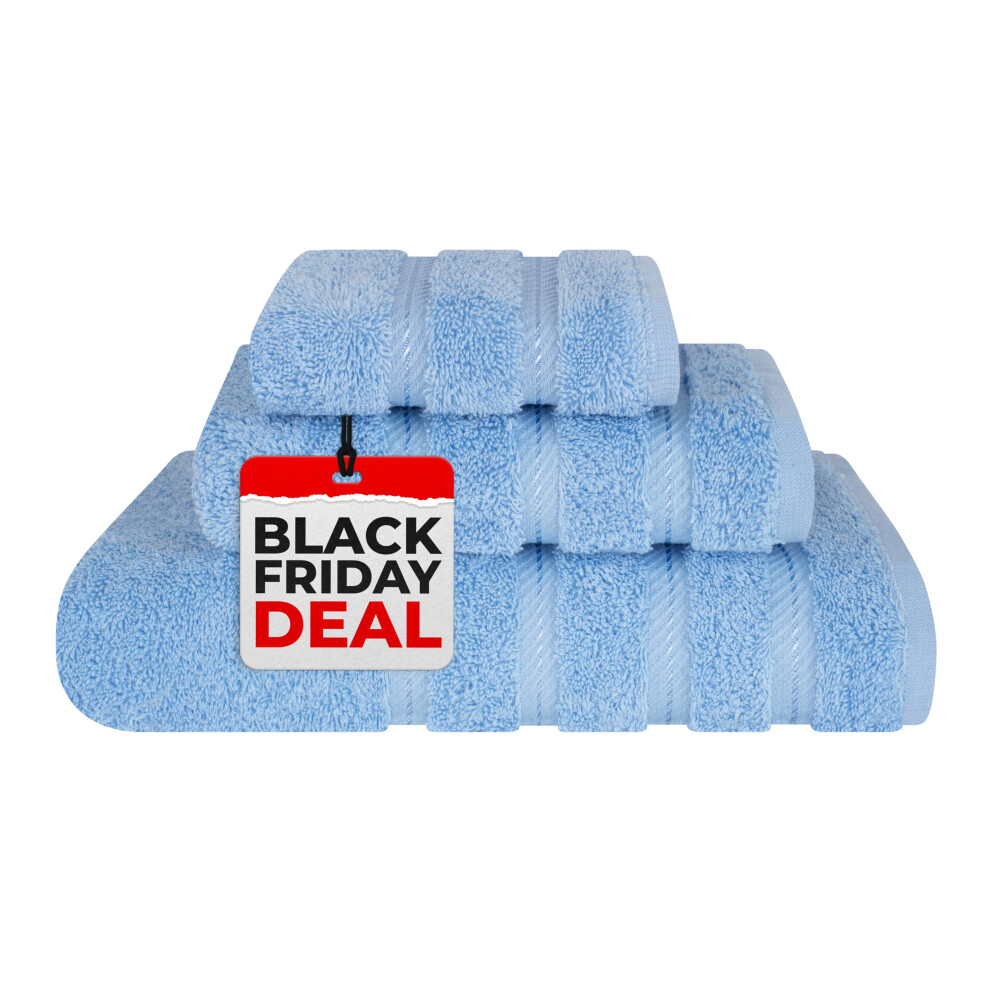 American Soft Linen Luxury 3 Piece Towel Sets 1 Bath Towel 1 Hand Towel 1 Washcloth 100% Turkish Cotton Towels for Bathroom Light Blue Towel Set