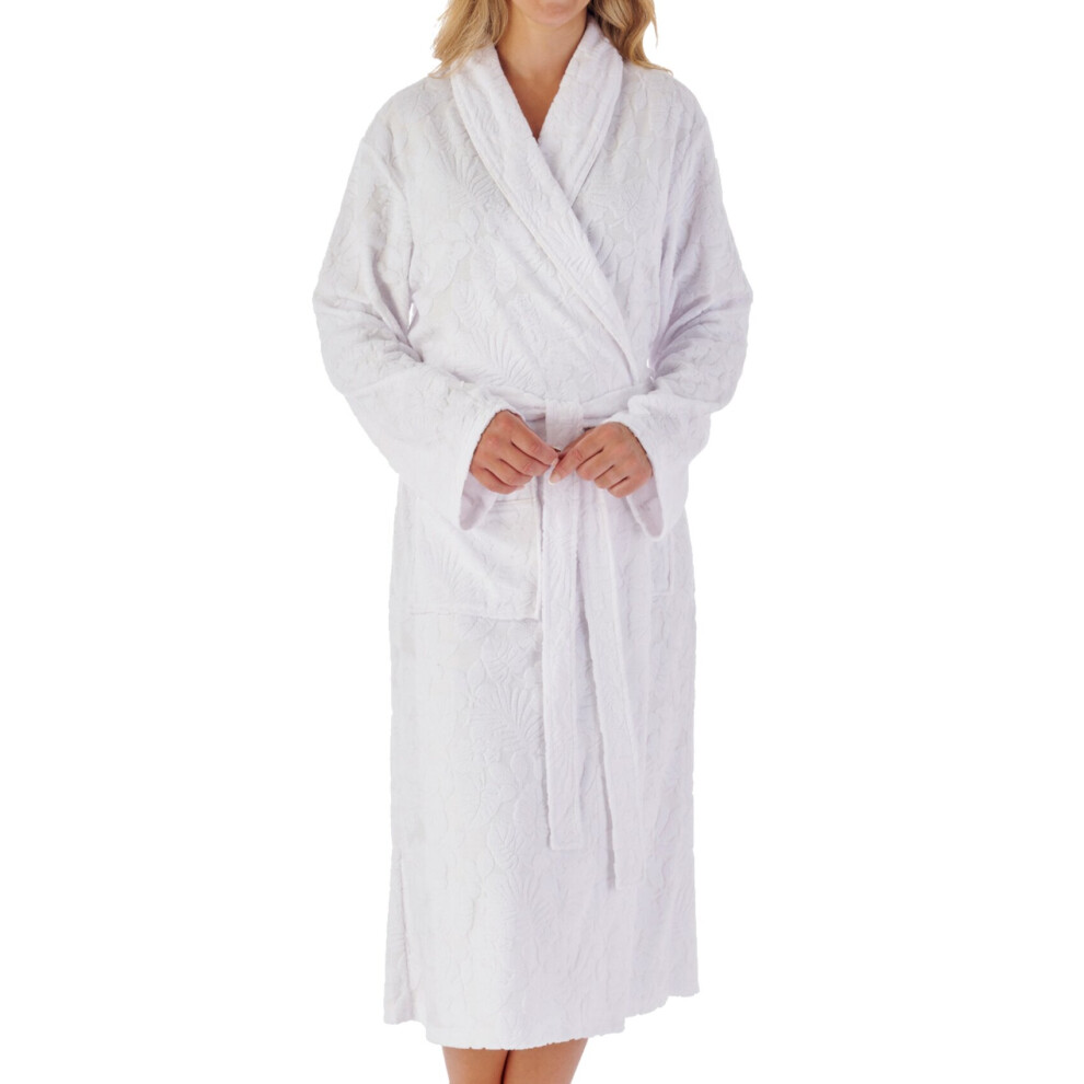 (White, Medium) Slenderella Ladies Floral Shawl Collar Towelling Dressing Gown