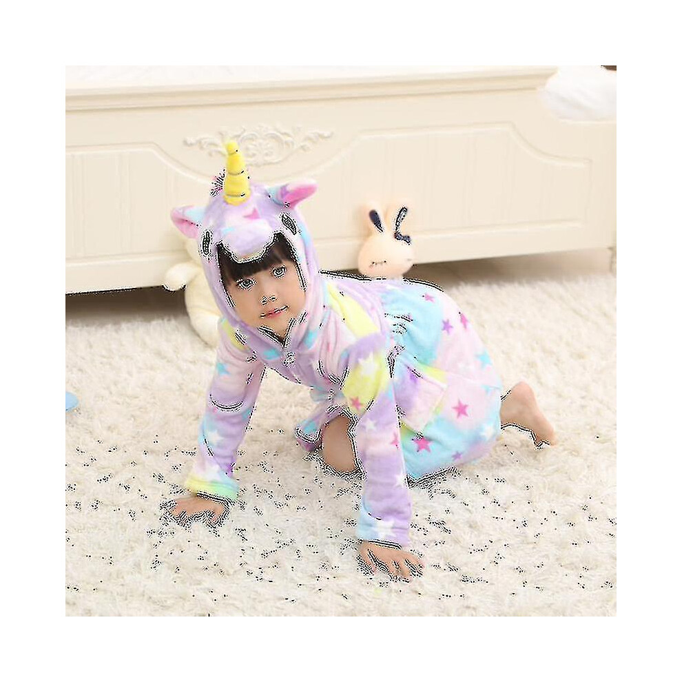 (Rainbow Star, 4-5 Years) Kids Girls Unicorn Hooded Bathrobe Towelling Bath Robe Dressing Gown Pajamas Flannel Loungewear Robe