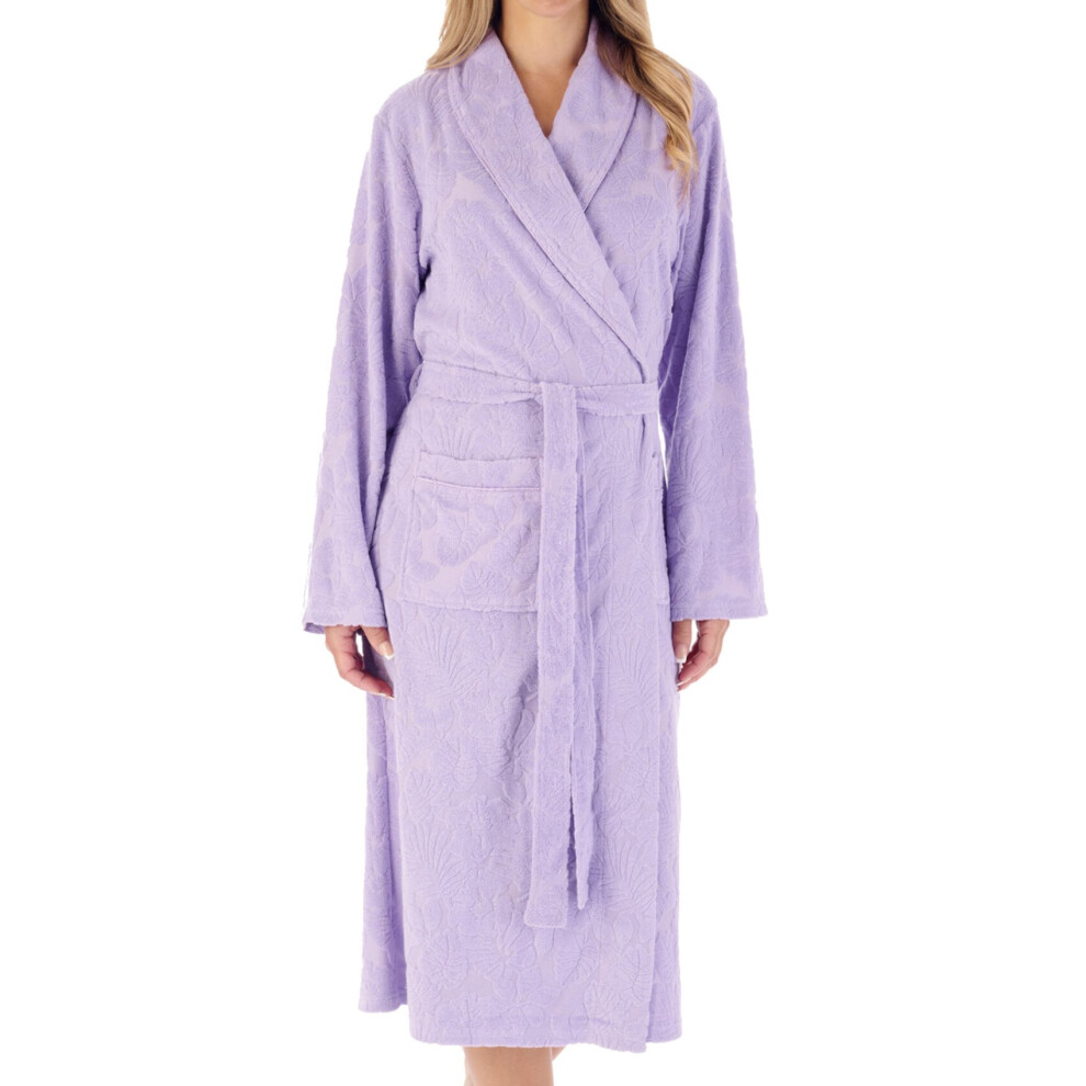(Lilac, 2XL) Slenderella Ladies Floral Shawl Collar Towelling Dressing Gown