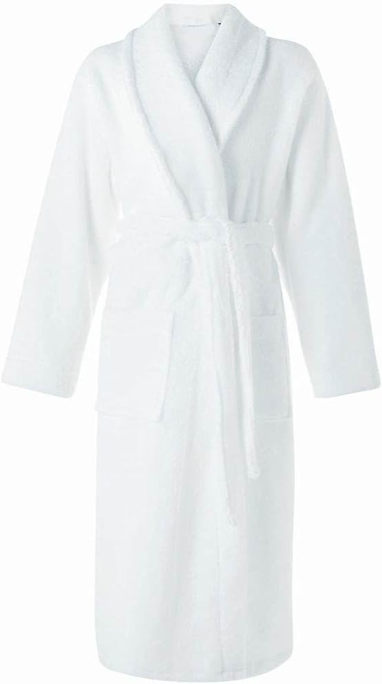 Terry Towelling Bath-Robe Dressing Gown 100% Cotton Shawl Bathrobe White