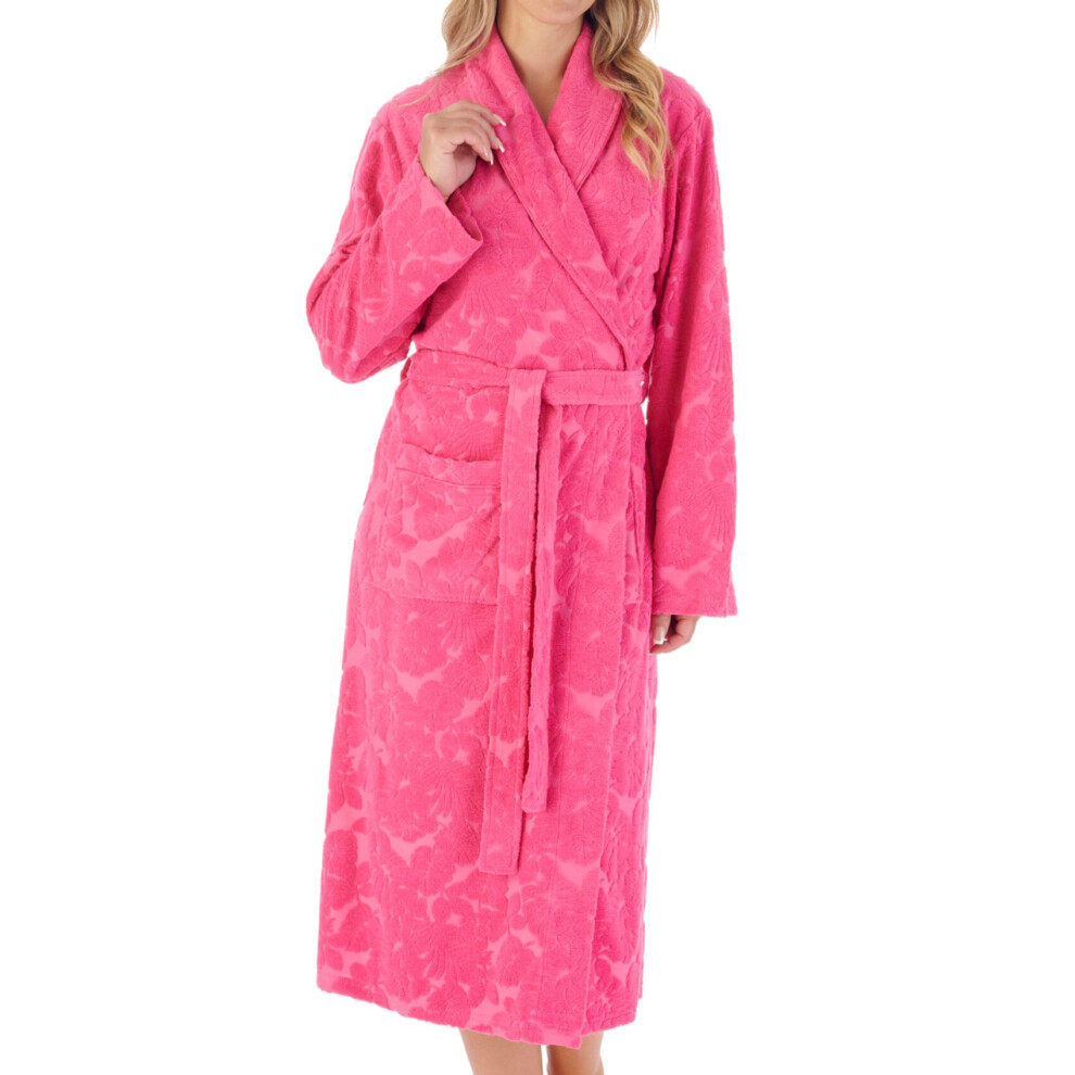 (Raspberry, 2XL) Slenderella Ladies Floral Shawl Collar Towelling Dressing Gown