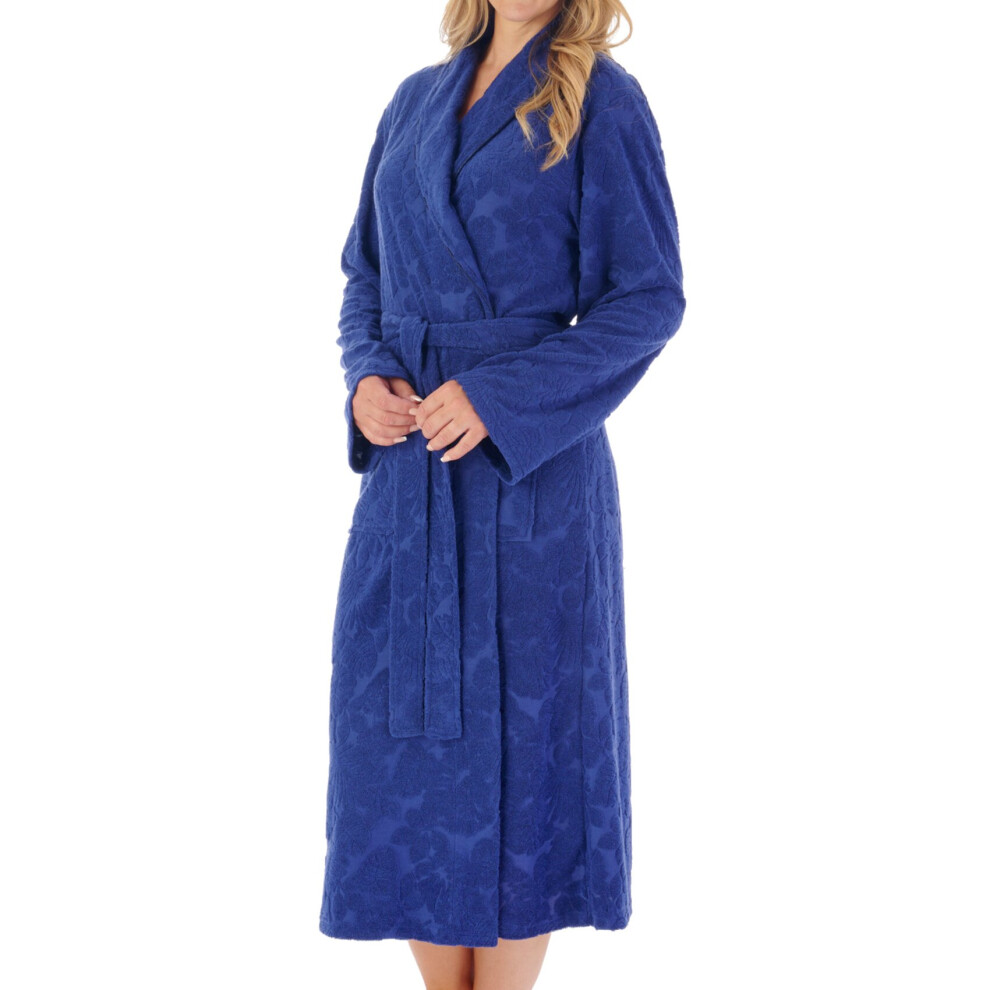 (Navy, Medium) Slenderella Ladies Floral Shawl Collar Towelling Dressing Gown
